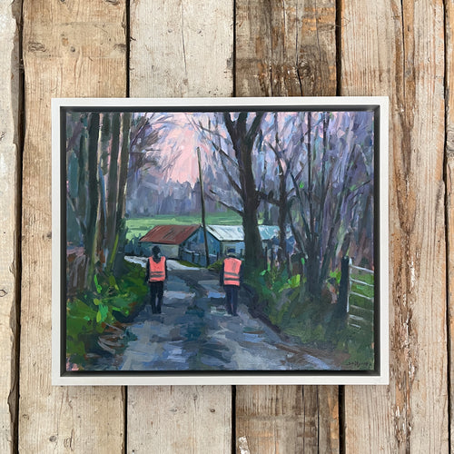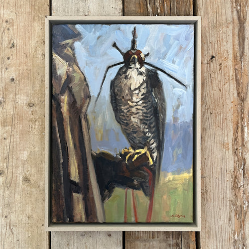 “I paint mainly in oils and acrylics, principally figurative, with a strong interest in the dynamics of the natural world. My love of nature, the countryside and wild places has been hugely inspirational, in particular my surroundings in the uplands of Wicklow close to home. A keen hill walker, bird watcher and falconer, I have roamed these hills for many years. It never ceases to amaze how it inspires every time. While outdoors I take photos, sketch, sometimes paint, often finishing small works on site. Generally these are prompts, ways of gathering information in preparation for larger paintings completed in the studio”
